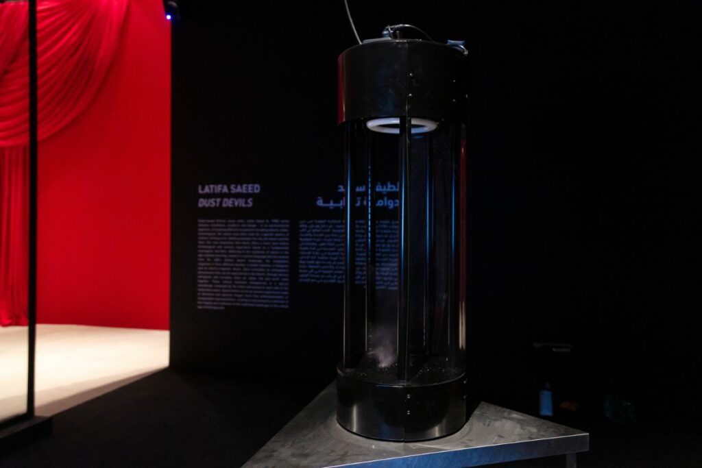 Saeed’s ‘Dust Devils’ offers a captivating dialogue between nature and innovation, reflecting the essence of the Gulf desert landscape.