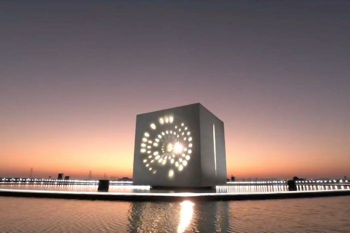 The revolving, glowing cube is now a public artwork. Tickets cost AED 30 for adults and AED 15 for visitors under 17. The proceeds will go towards a mangrove conservation project.